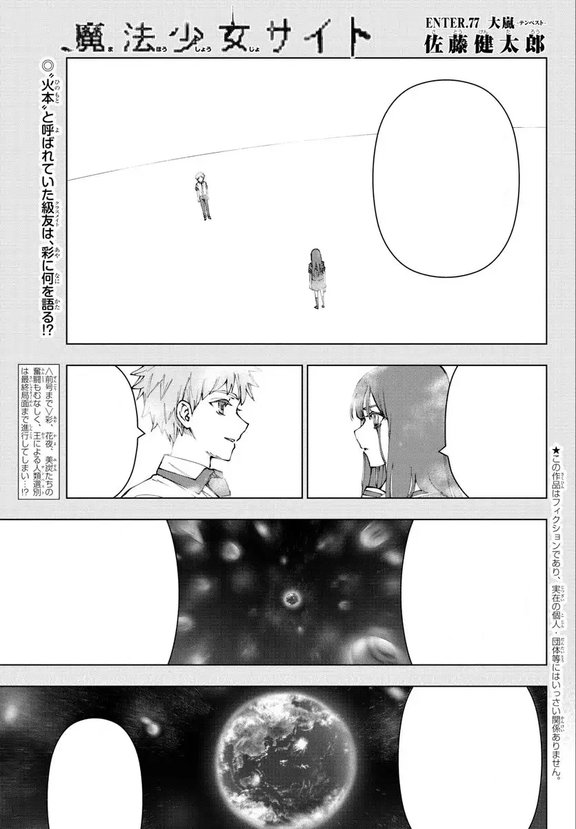 Great Storm -Tempest- (大嵐 (テンペスト), Ōarashi (tenpesuto)?) is the ENTER 77 published in the Weekly Shōnen Champion of the Akita Shoten publishing house [1], being the Chapter 132 of the manga of Mahou Shoujo Site written and illustrated by Kentaro Sato.